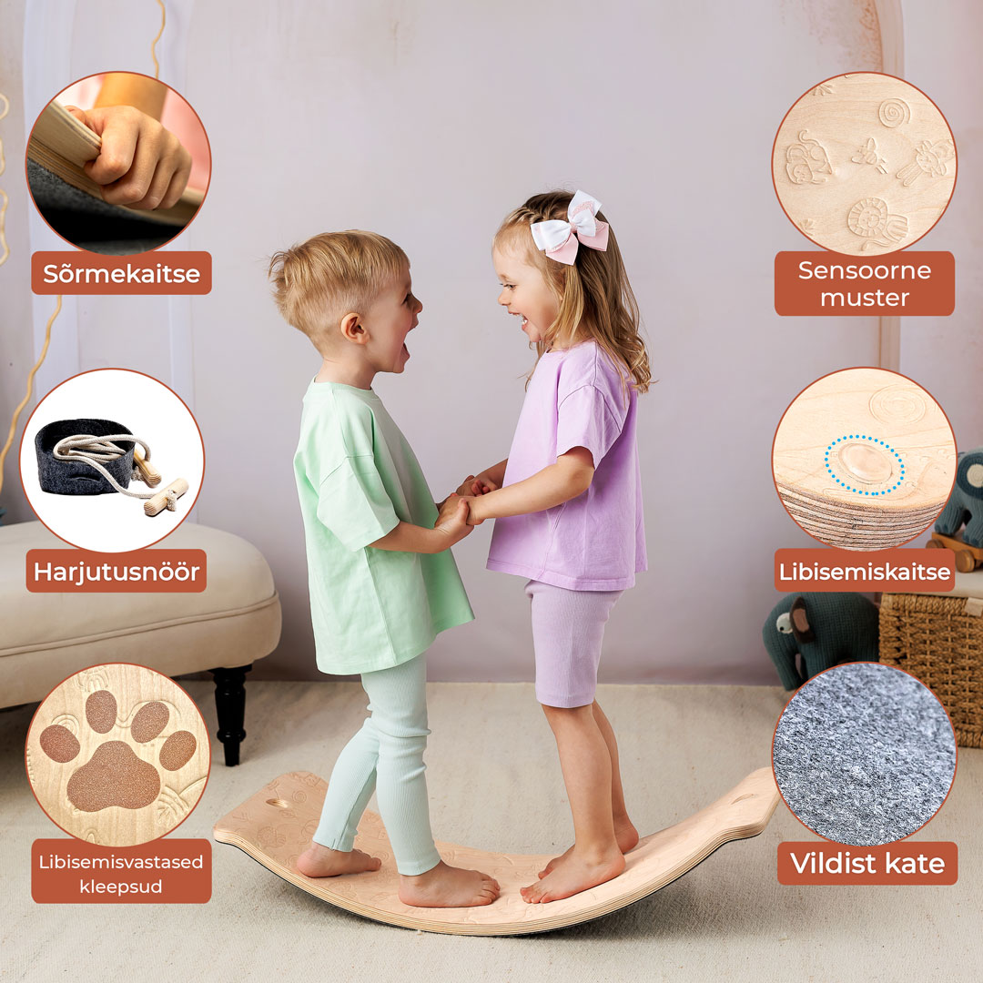 Meie tasakaalulaud on lõbus ja kaasahaarav, julgustades lapsi aktiivselt mängima ja arendama tasakaalu ja koordinatsiooni. See on suurepärane viis ekraaniaja vähendamiseks ja aktiivse elustiili edendamiseks.